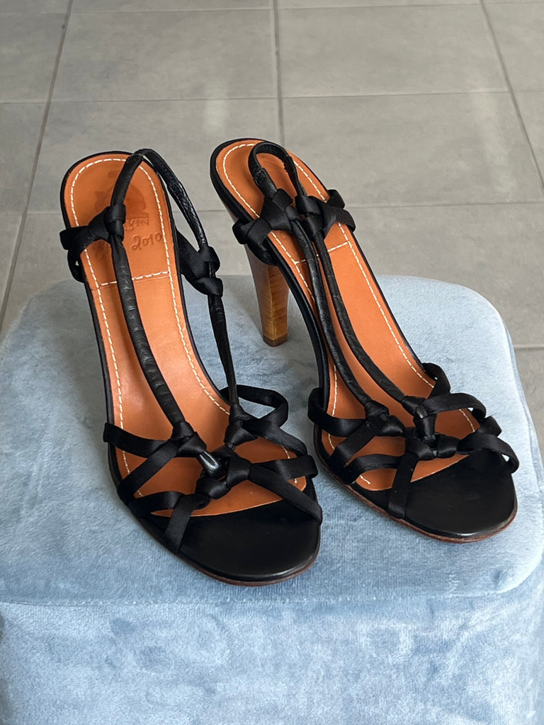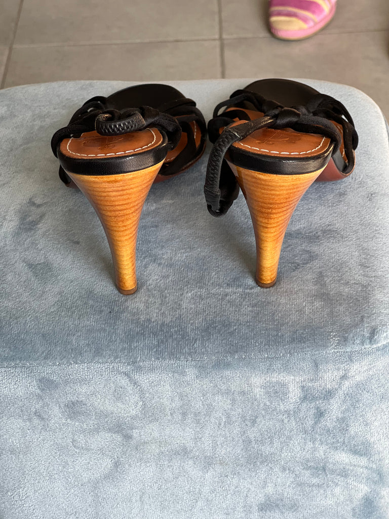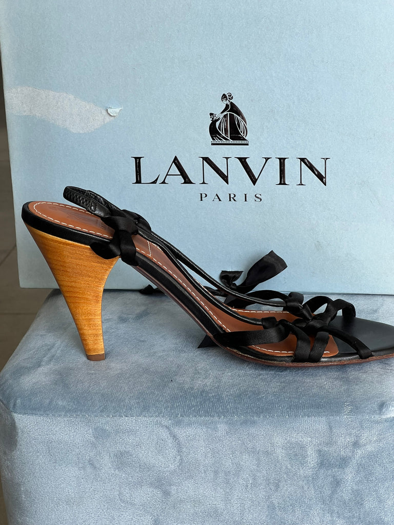 Black leather Lanvin Paris sandals with wooden heel #LanvinParis #Sandals