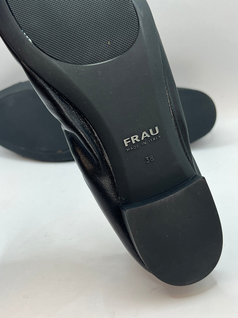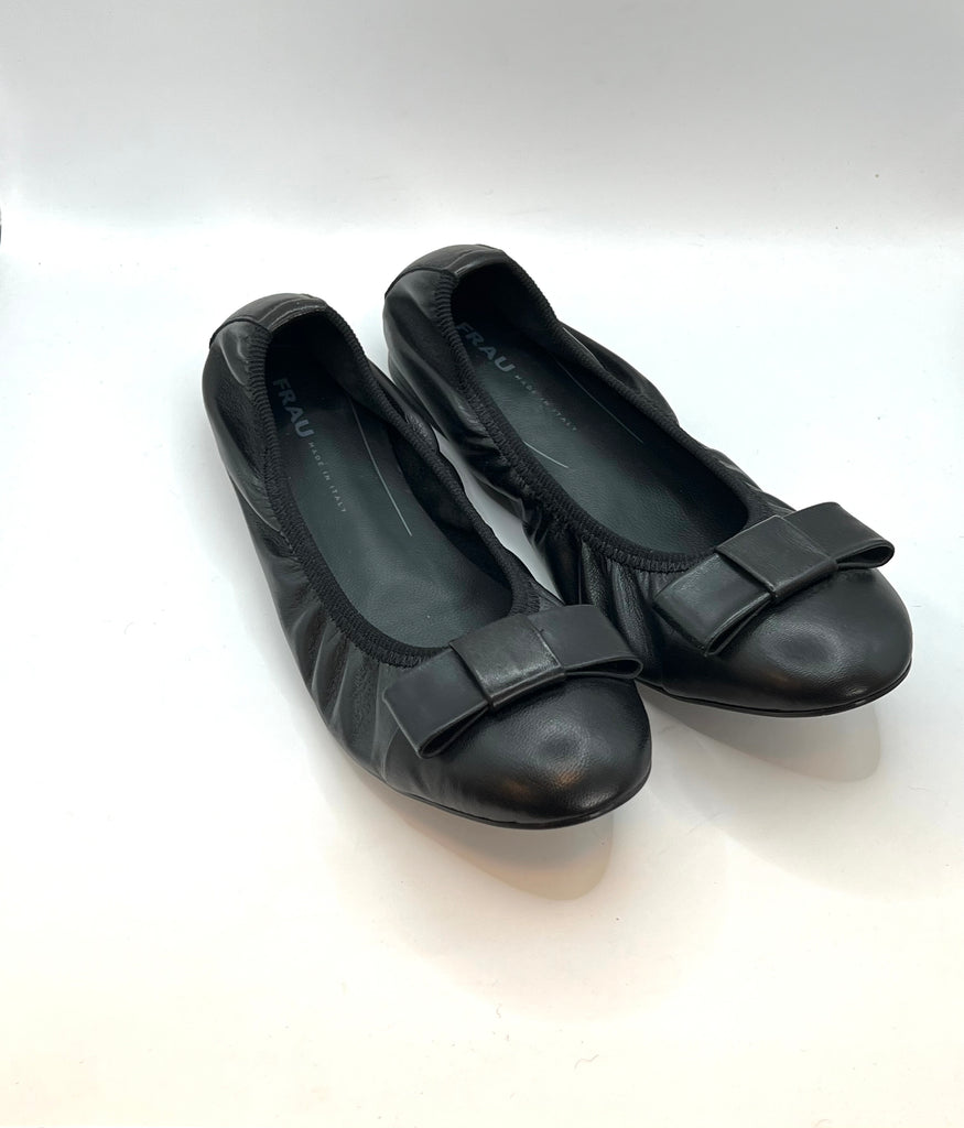 🌷Queste ballerine Frau in pelle, nuove e mai indossate, presentano un design elegante e minimale: sono realizzate in pelle nera liscia, con una finitura morbida e confortevole tipica dei prodotti Frau, e arricchite da un fiocco applicato sulla punta che aggiunge un tocco femminile e raffinato.